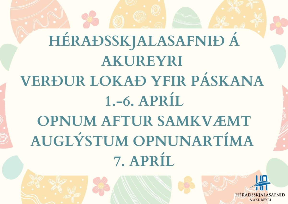 Vinsamlegast athugið að Héraðsskjalasafnið á Akureyri verður lokað yfir páskana 1.-6. apríl 2026. Opnum aftur samkvæmt auglýstum opnunartíma 7. apríl.